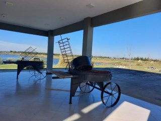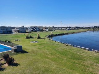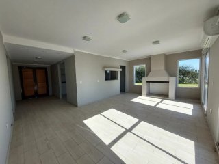 Este inmueble se encuentra ubicado en un lugar privilegiado dentro del barrio, por su cercanía del ingreso, lugar de deportes y esparcimiento. La casa está desarrollada en dos plantas: Una de las características que se destaca es la amplia visibilidad del paisaje que se puede observar. En Planta baja desde el living o mientras se está cocinando, un contacto ideal para aquellos que disfrutan de la luminosidad, el sol y el paisaje abierto. Los dos dormitorios ubicados en esta planta, nos ofrecen una visión muy agradable desde sus ventanales, y un baño completo. Consta de una Superficie construida de 130 M2. Y 1030 M2 de terreno. En la Planta alta se encuentra un tercer dormitorio y un escritorio o cuarto dormitorio y baño completo, con una salida desde esta planta a la terraza. El barrio ofrece muchas posibilidades: Canchas de tenis, futbol sin desplazarnos demasiado por estar a metros de nuestra casa. Si nuestro deseo es hacer practica de equitación a dos minutos se encuentra el Club Hípico General San Martin. Tener la posibilidad de apreciar la belleza y la vida en la laguna artificial. Realizar senderismo en un amplio predio seguro. La casa está muy cerca del club House donde se encuentra además la pileta y las parrillas. En un solo lugar la posibilidad de desarrollarnos físicamente y disfrutar de un entorno natural