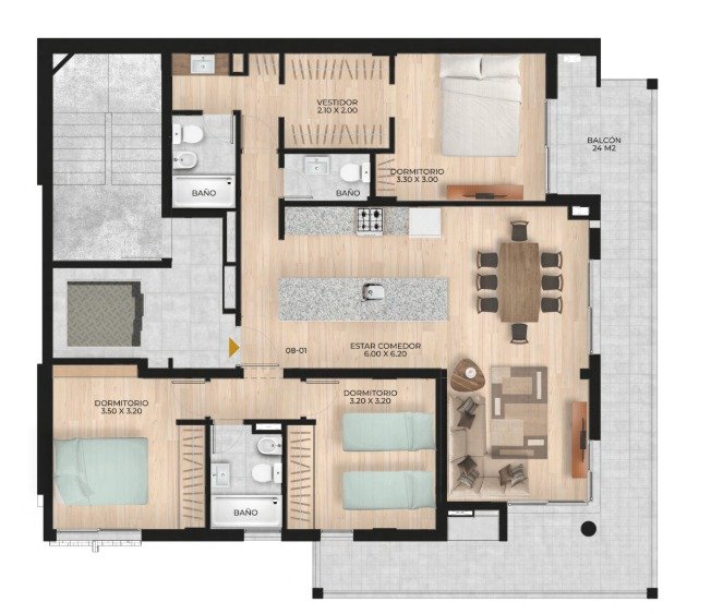 Este Piso Exclusivo a estrenar es el hogar que estabas buscando! Con 3 dormitorios, baño en suite, vestidor y cocina con una increíble isla, son las comodidades que necesitás para vivir sin apuro y con máximo confort. La terraza de uso exclusivo será tu lugar preferido con 24m2 para disfrutar de la vista despejada. En el corazón de Barrio Martin, este edificio está ubicado en una de las zonas con mas auge y en pleno crecimiento de la ciudad!